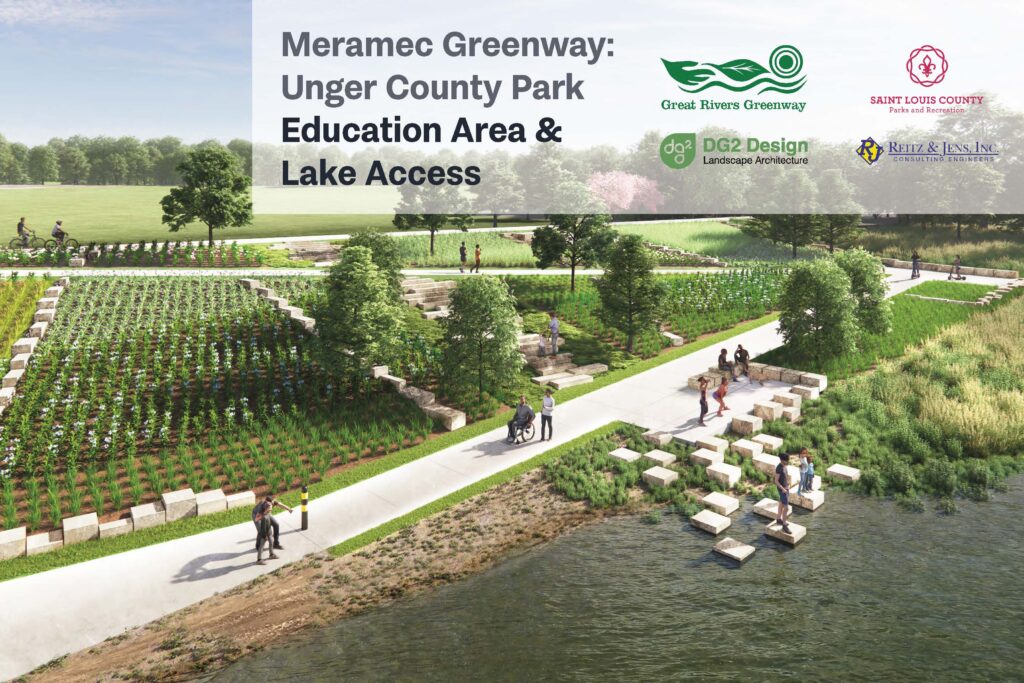 A portion of the Meramec Greenway in Unger Park has been closed as a result of repeated flooding. We are working with St. Louis County to rebuild the greenway in a location that is resilient to flooding conditions and make other enhancements within the park. When complete, the greenway in Unger Park will be connected to Fenton City Park, George Winter Park, and the walking/biking bridge over the Meramec River along I-44.